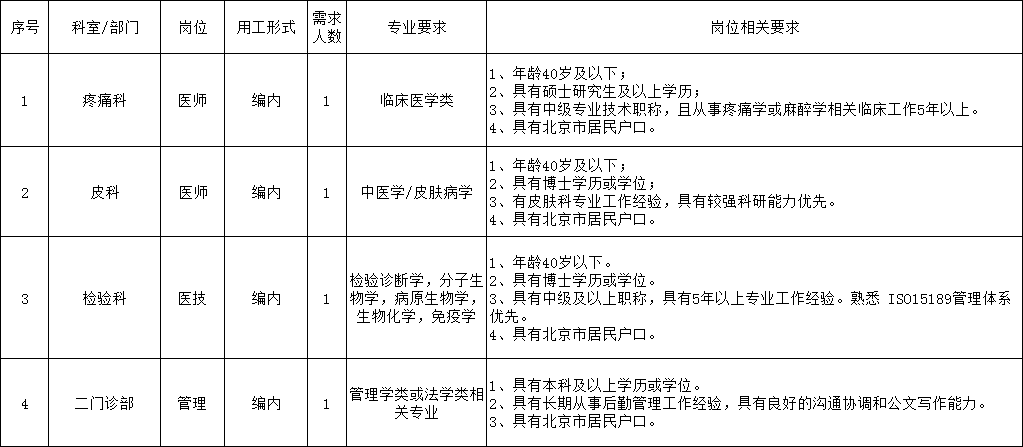 根据工作需要,2023年中国中医科学院广安门医院公开招聘编制内工作人员4名。现将有关事项公告如下。